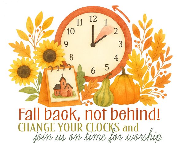 Don't forget! Daylight Savings Time ends this Sunday, 11/3/25, at 2am. We'll see you at 10:30am for All Saints' Day Worship.